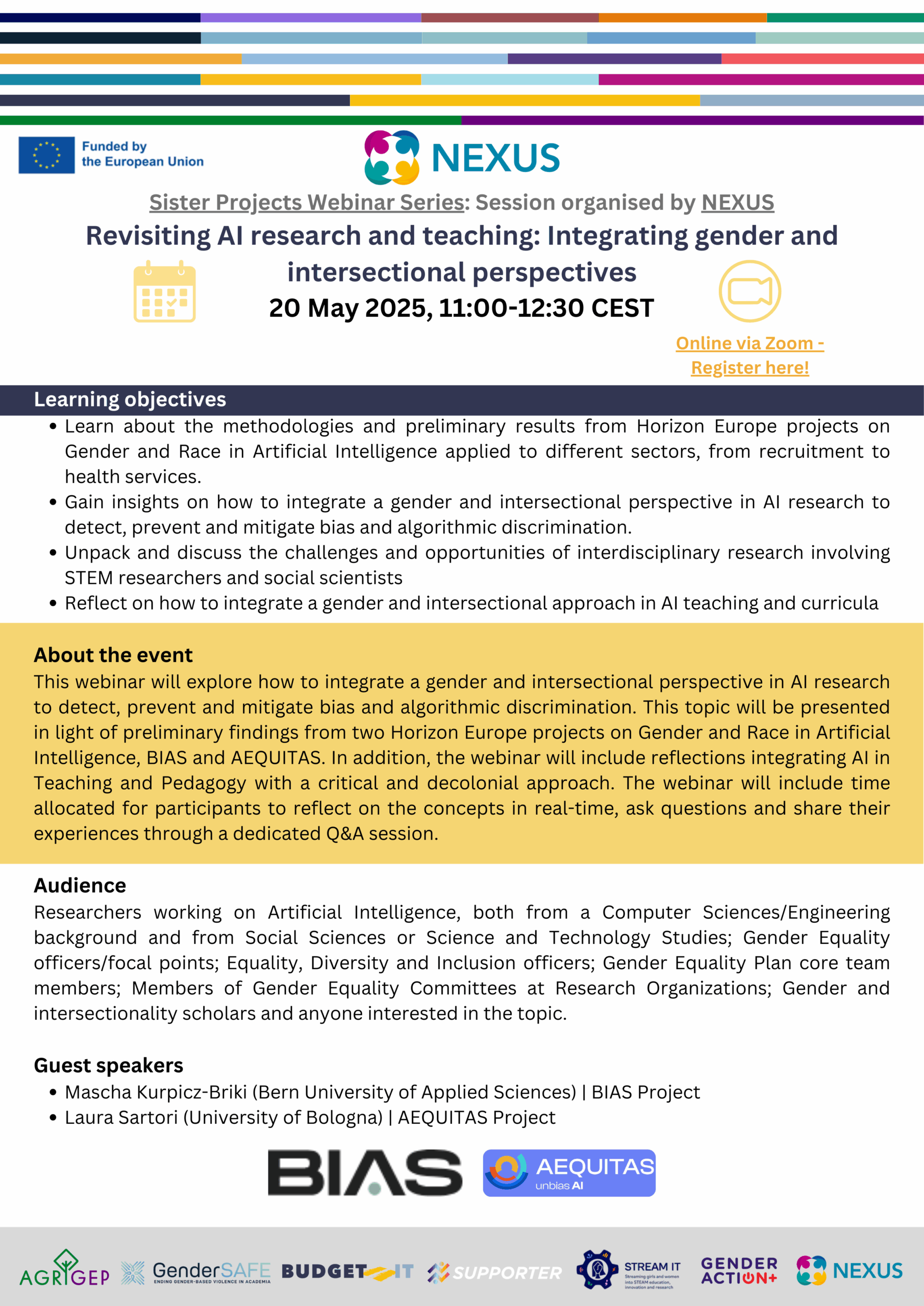 Join us for a discussion on integrating gender and intersectional perspectives in AI research and education. Learn from Horizon Europe projects BIAS and AEQUITAS, and explore strategies to prevent algorithmic bias and discrimination.